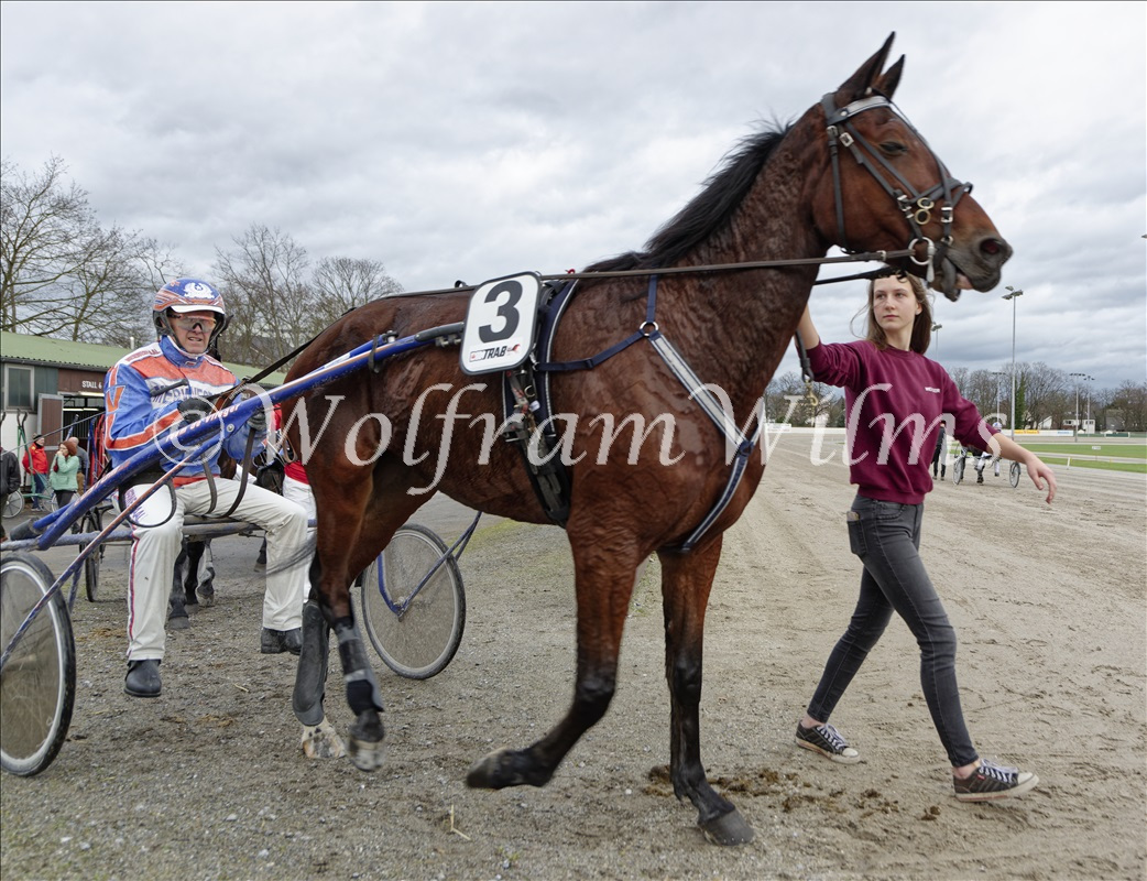 Im ersten Rennen zum „Preis vom Team Toto Dintrab“ setzte sich Tom Kooyman mit „Parodie Vrijthout“ durch.