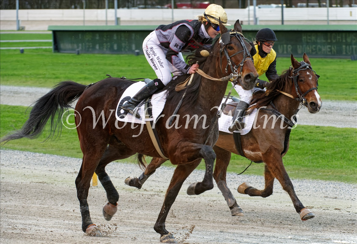 Im ersten Rennen zum „Preis vom Team Toto Dintrab“ setzte sich Tom Kooyman mit „Parodie Vrijthout“ durch.