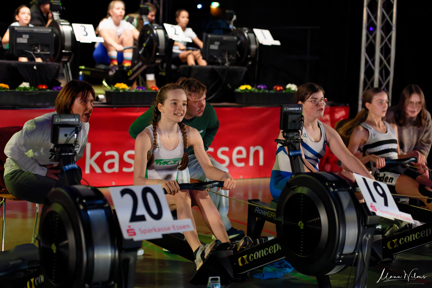 Über zwei riesige Anzeigentafel konnte man live mitverfolgen, welcher Ruderergometer führt. Was für ein Kraftakt für die Sportlerinnen und Sportler, die bis zur völligen Erschöpfung um die Plätze kämpften.