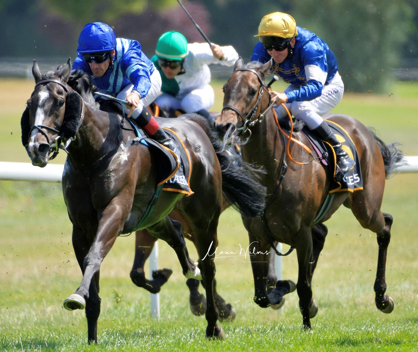 So kamen spannende und interessante Fotos zustande, die nicht nur das Renngeschehen begleiten, sondern auch das Drumherum. Ob beim Aufgelopp, dem Einrücken, Siegerinterview oder das Duschen der Pferde nach den einzelnen Rennen – Es ist immer wieder eine Freude, die Aktiven mit der Kamera zu begleiten.