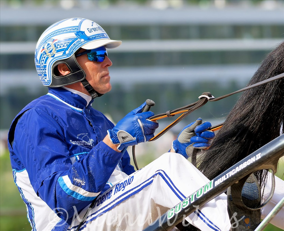 Im vorletzten Trabrennen gewann Jesse D. ter Borgh mit „Candy Blue Chip“.