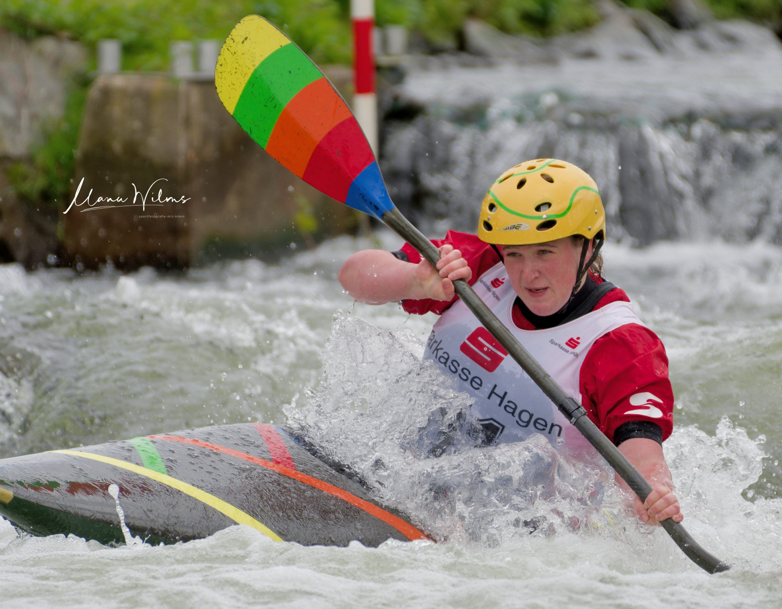 Bei einer Durchflussmenge/Geschwindigkeit von 6 bis 8 m³ kein leichtes Unterfangen, gerade die Aufwärtstore (Befahrung gegen die Flussrichtung) zu meistern.