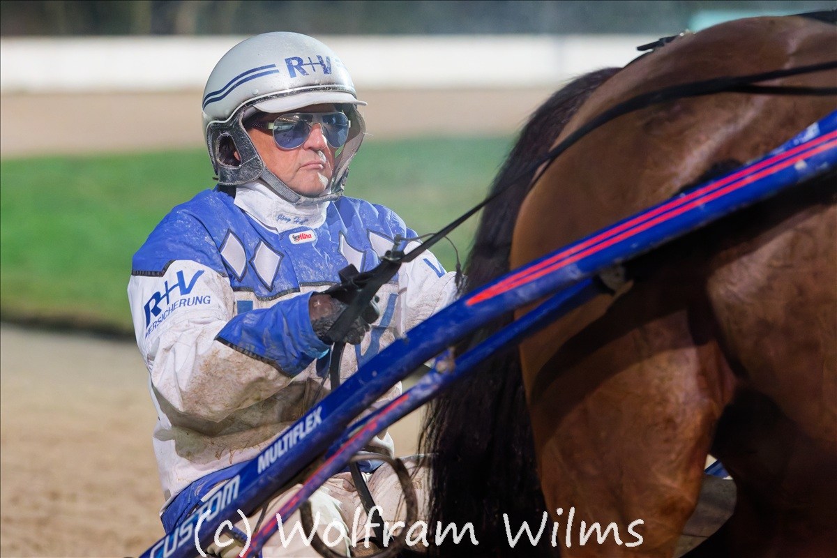 Der Renntag begann spät, es wurde schnell dunkel und das spärliche Flutlicht forderte uns und unsere Kameras gewaltig und schließlich noch das Karriereende von Jörg Hafer, der nach 1405 Siegen, die Fahrleinen aus der Hand gab.