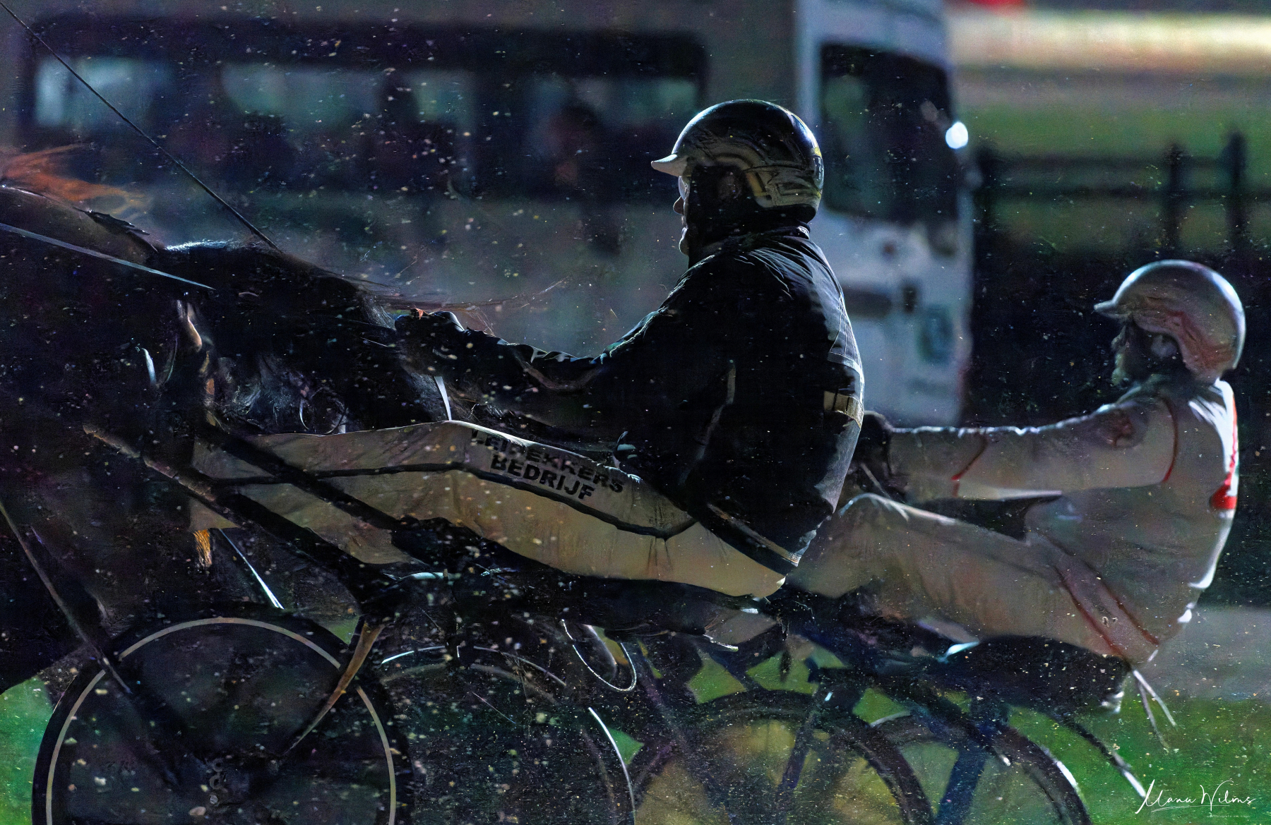 Der Renntag begann spät, es wurde schnell dunkel und das spärliche Flutlicht forderte uns und unsere Kameras gewaltig und schließlich noch das Karriereende von Jörg Hafer, der nach 1405 Siegen, die Fahrleinen aus der Hand gab.