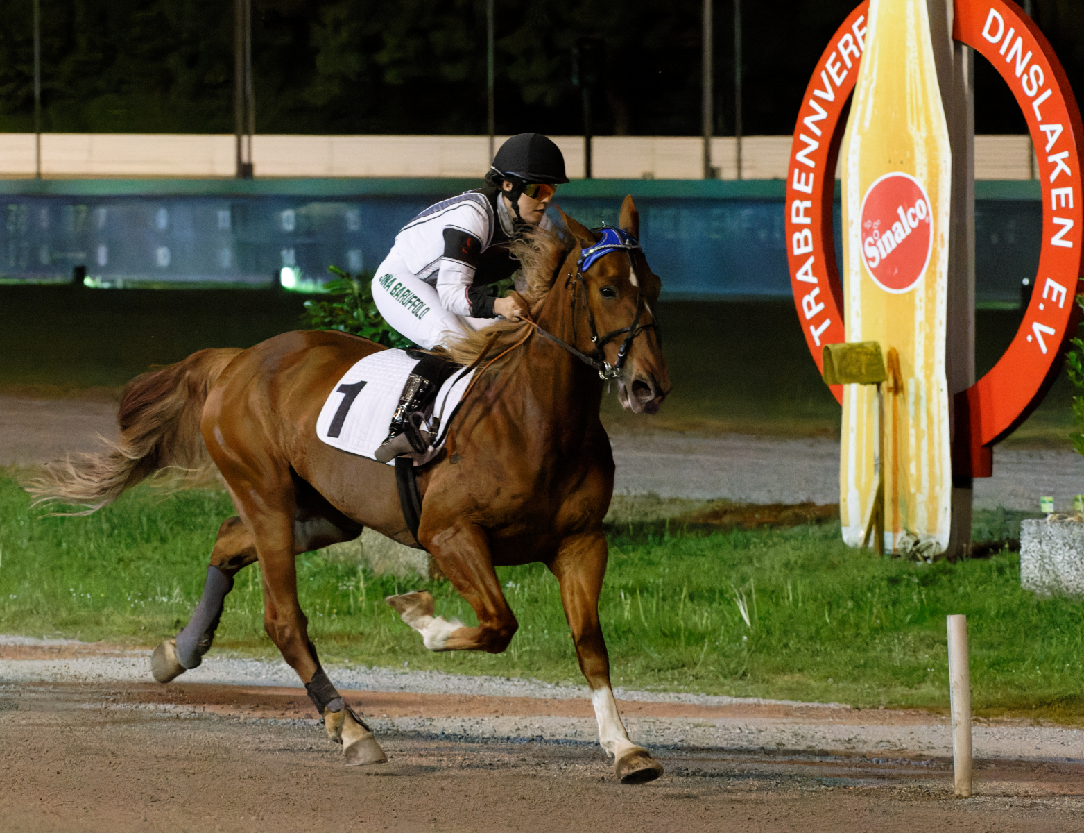 Weiter ging es. Das zahlreiche Publikum entlang der Strecke, erlebte im dritten Rennen des Abends den klaren Sieg der favorisierten Stute „Atlanta“. Ein perfekter Start-Ziel-Sieg vonTom Kooyman.