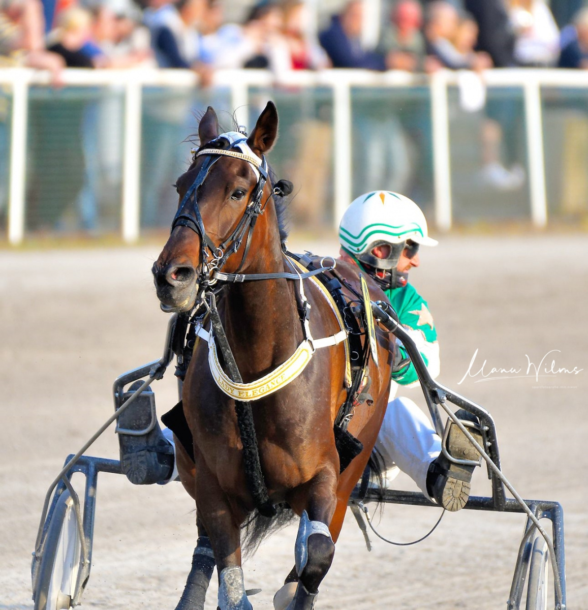 Im neunten Rennen des Tages freute sich Rob van Toor mit „Hermine Sophie“. Ein unglaublich spannendes Rennen, den die Außenseiterin „Hermine Sophie“ ließ die Favoriten „Lancome Boko“, gefahren von Tom Kooyman und „Klarissa Velten“ mit Jouni Nummi knapp hinter sich.
