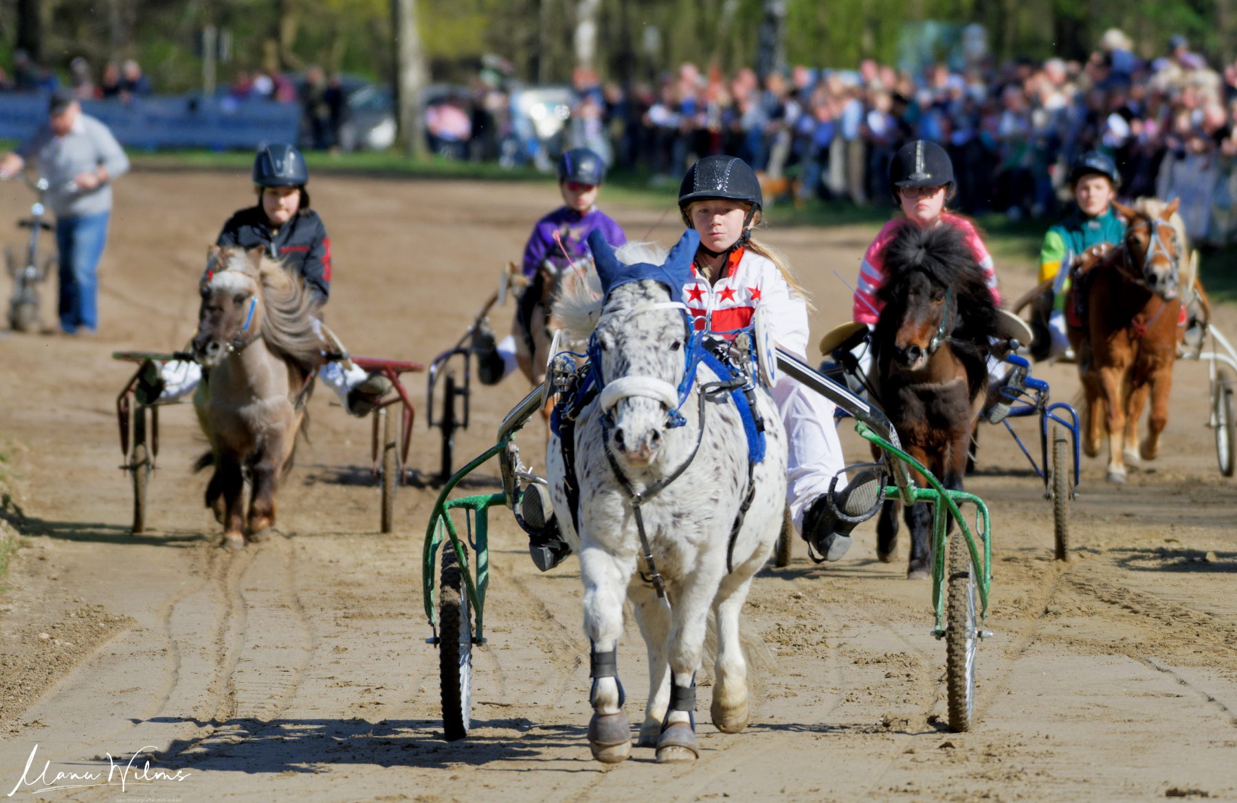 Es folgte das gut besetzte Minitraber-Rennen. Auf der Zielgerade profitierte Carlin Swann mit „Sammy“ , da „Cornelius“ mit Fahrerin Laura Braun leider in den Galopp wechselte.