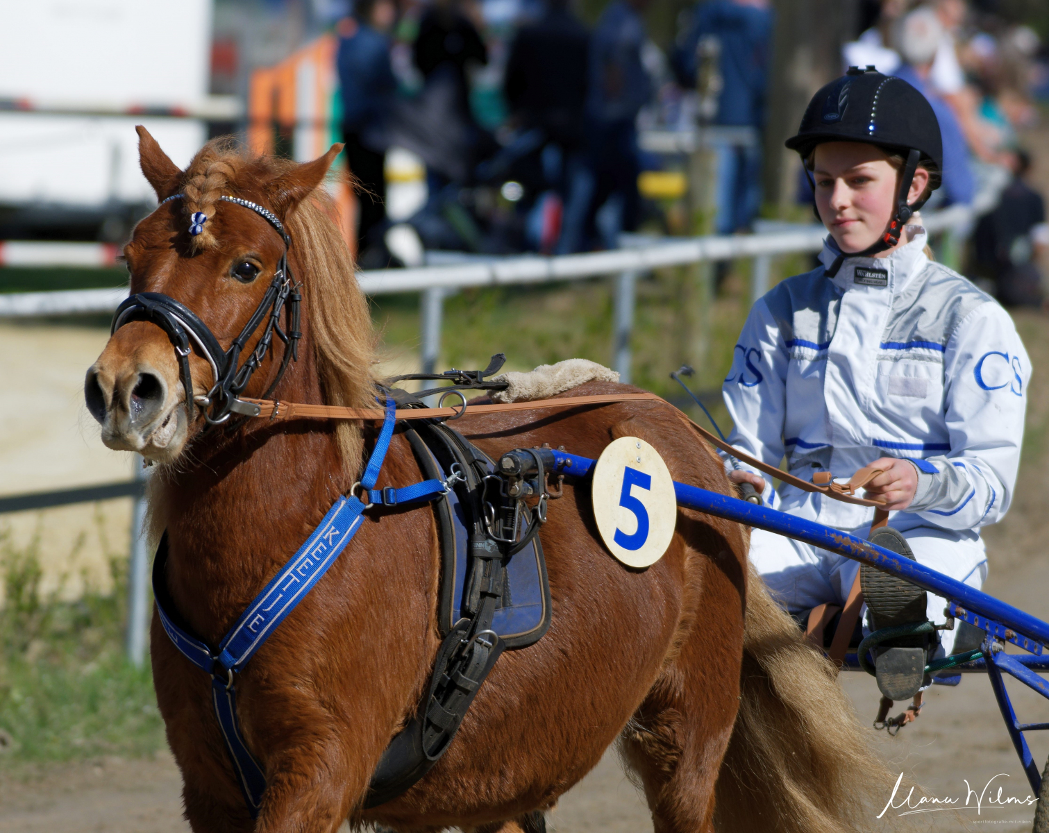 Es folgte das gut besetzte Minitraber-Rennen. Auf der Zielgerade profitierte Carlin Swann mit „Sammy“ , da „Cornelius“ mit Fahrerin Laura Braun leider in den Galopp wechselte.
