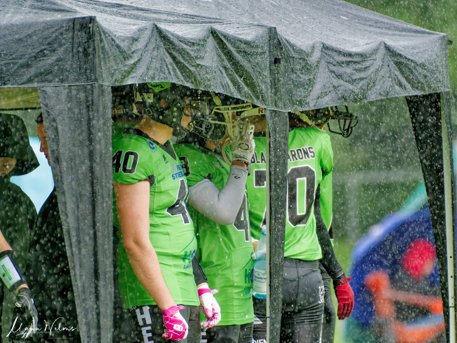 Der Regen ließ erst in den letzten Minuten des Spiels nach, die Gastgeber wurden stärker, doch zum Schluss hieß es 10:0 für die Schiefbahn Riders (aktuell auf Platz 2)