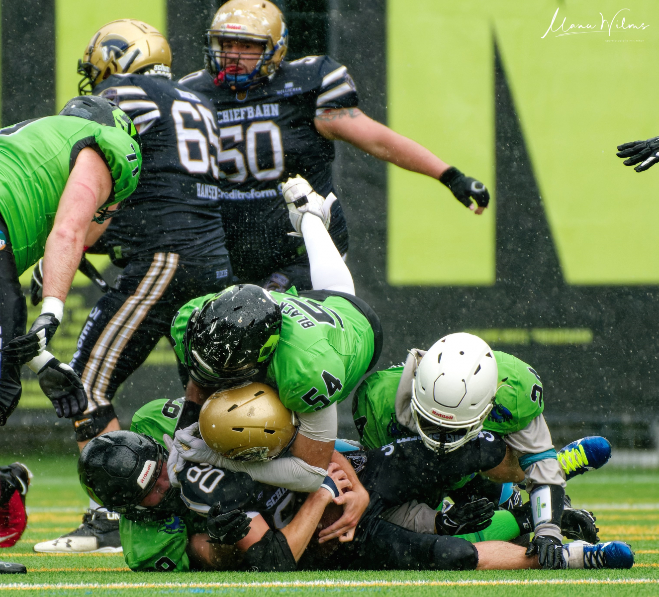 Der Regen ließ erst in den letzten Minuten des Spiels nach, die Gastgeber wurden stärker, doch zum Schluss hieß es 10:0 für die Schiefbahn Riders (aktuell auf Platz 2)