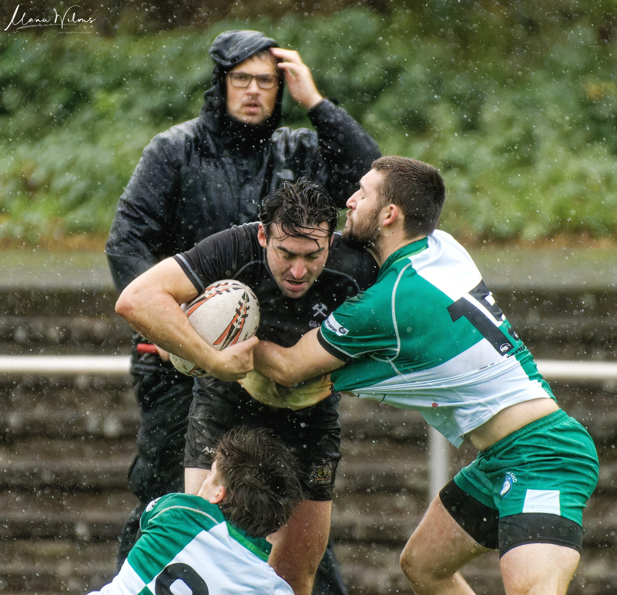 Beim einsetzenden Starkregen hatten beide Mannschaften Mühe, den Ball unter Kontrolle zu bringen. Doch wenn das Zuspiel klappte, ging es rasant nach vorne in Richtung gegnerischer Mallinie.