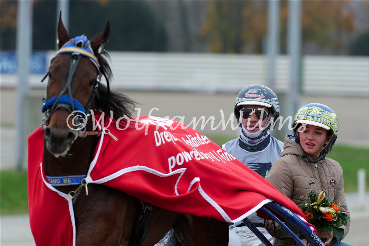 Weiter ging es im dritten Rennen mit einer spannenden Aufholjagd. Die führende „Hannah Hazelaar“, gesteuert von Marciano Hauber wurde kurz vor dem Ziel noch von Jim Veldmann und „Kenickie Kite“ abgefangen und trabte als Erster durch das Ziel.