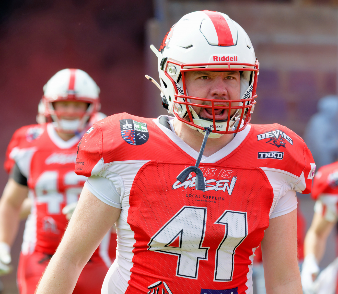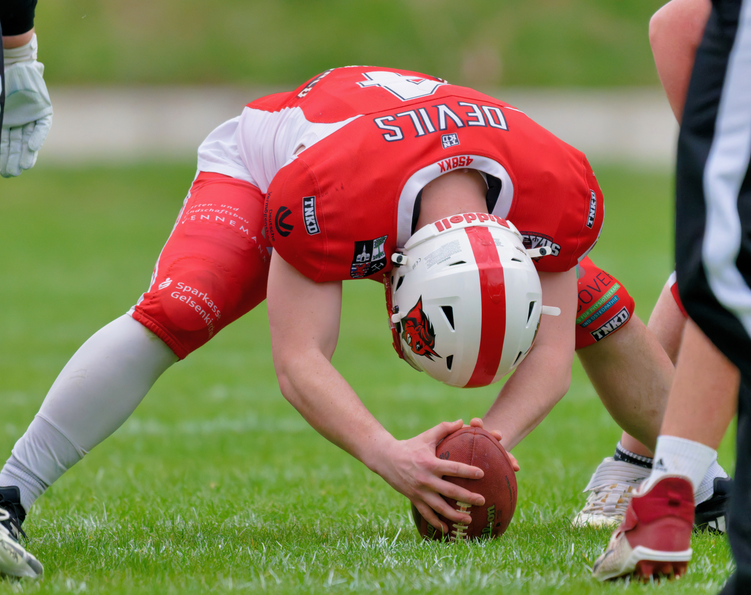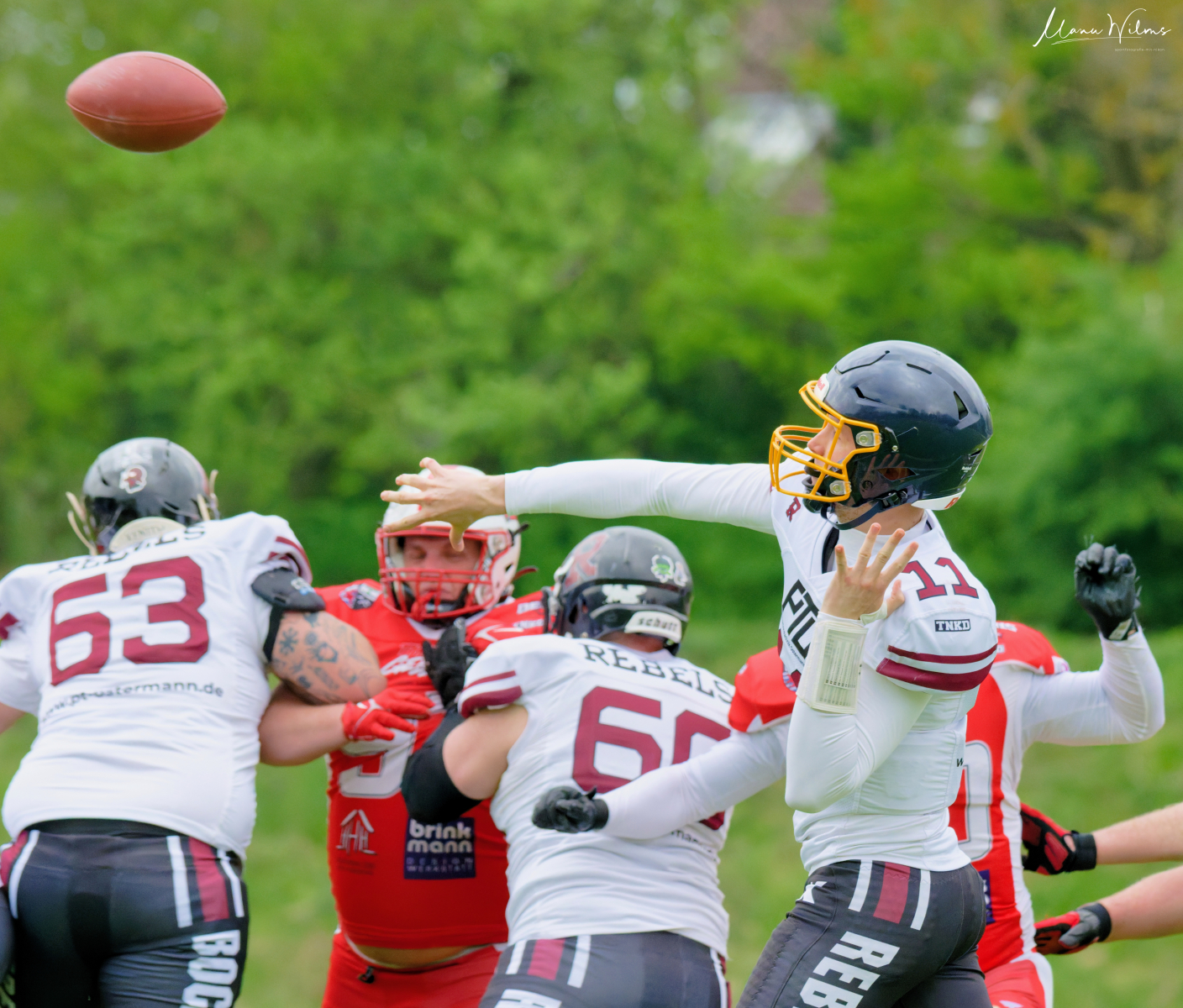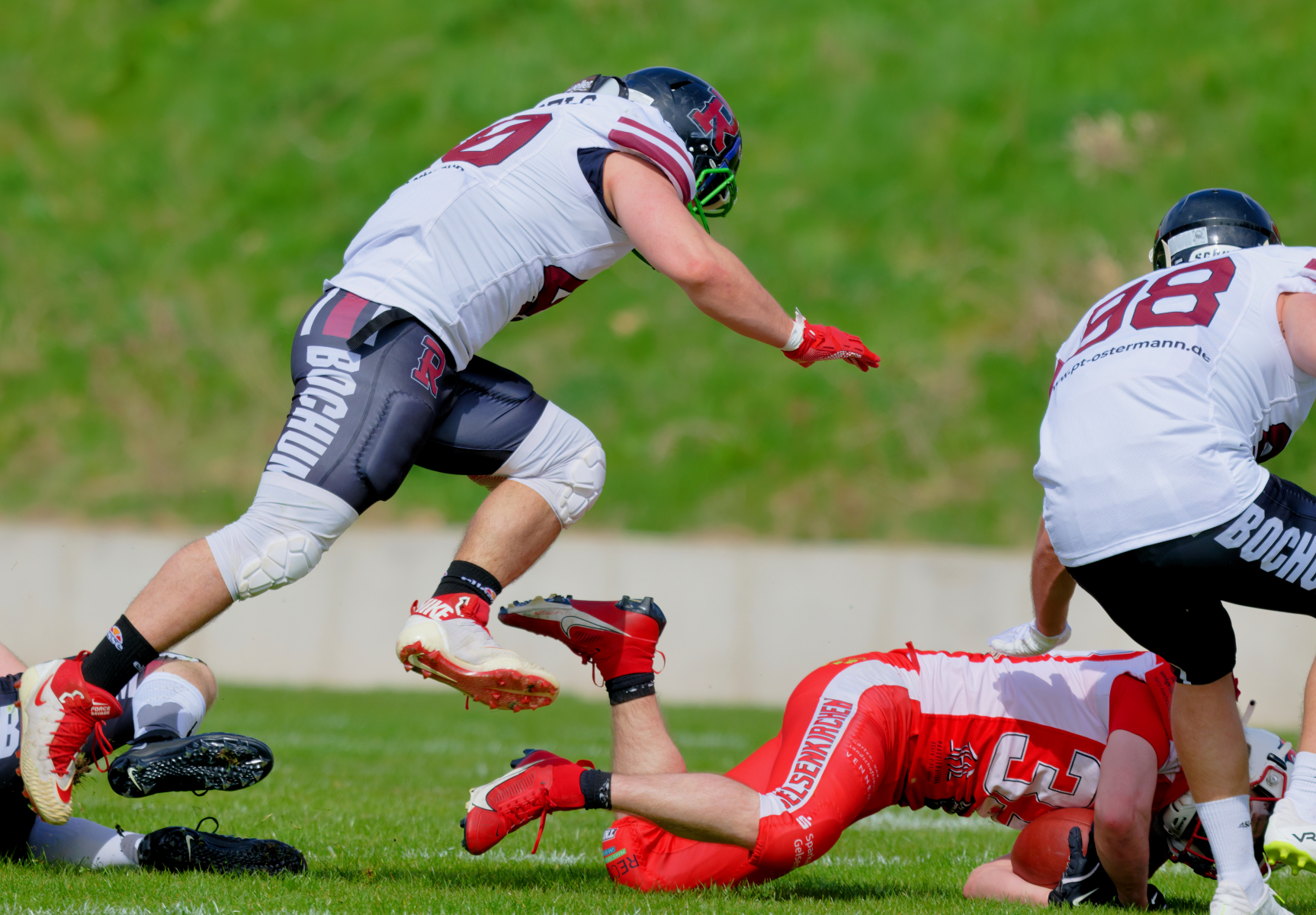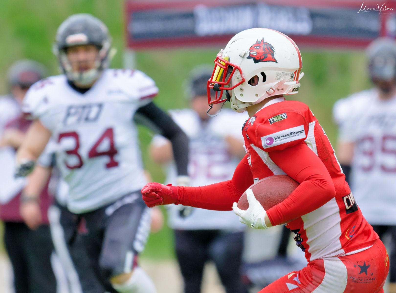 Es folgte zum Ankick um 15:00 Uhr ein Spiel auf Augenhöhe gegen den Oberligisten Bochum Rebels. Beide Teams kämpften in einem offenen Match, doch mit einem glücklicheren Ausgang für die Devils mit einem knappen Sieg von 14:7.