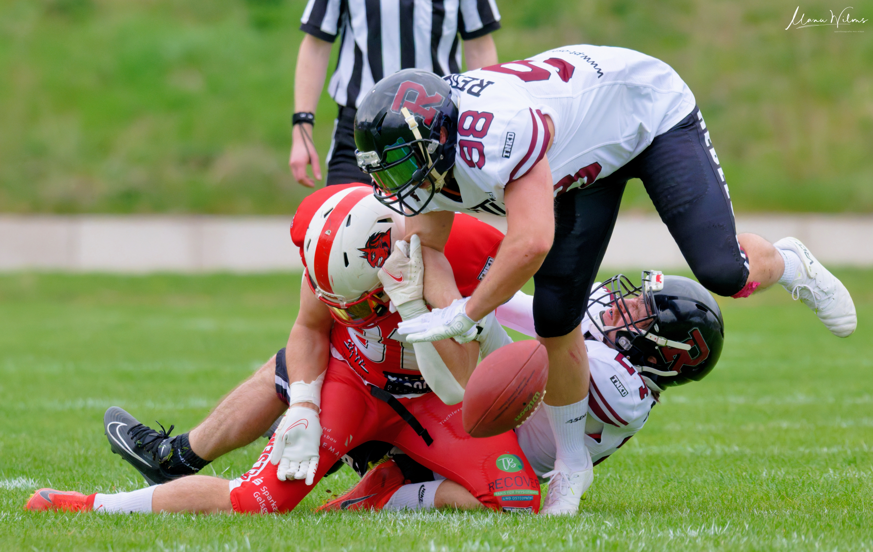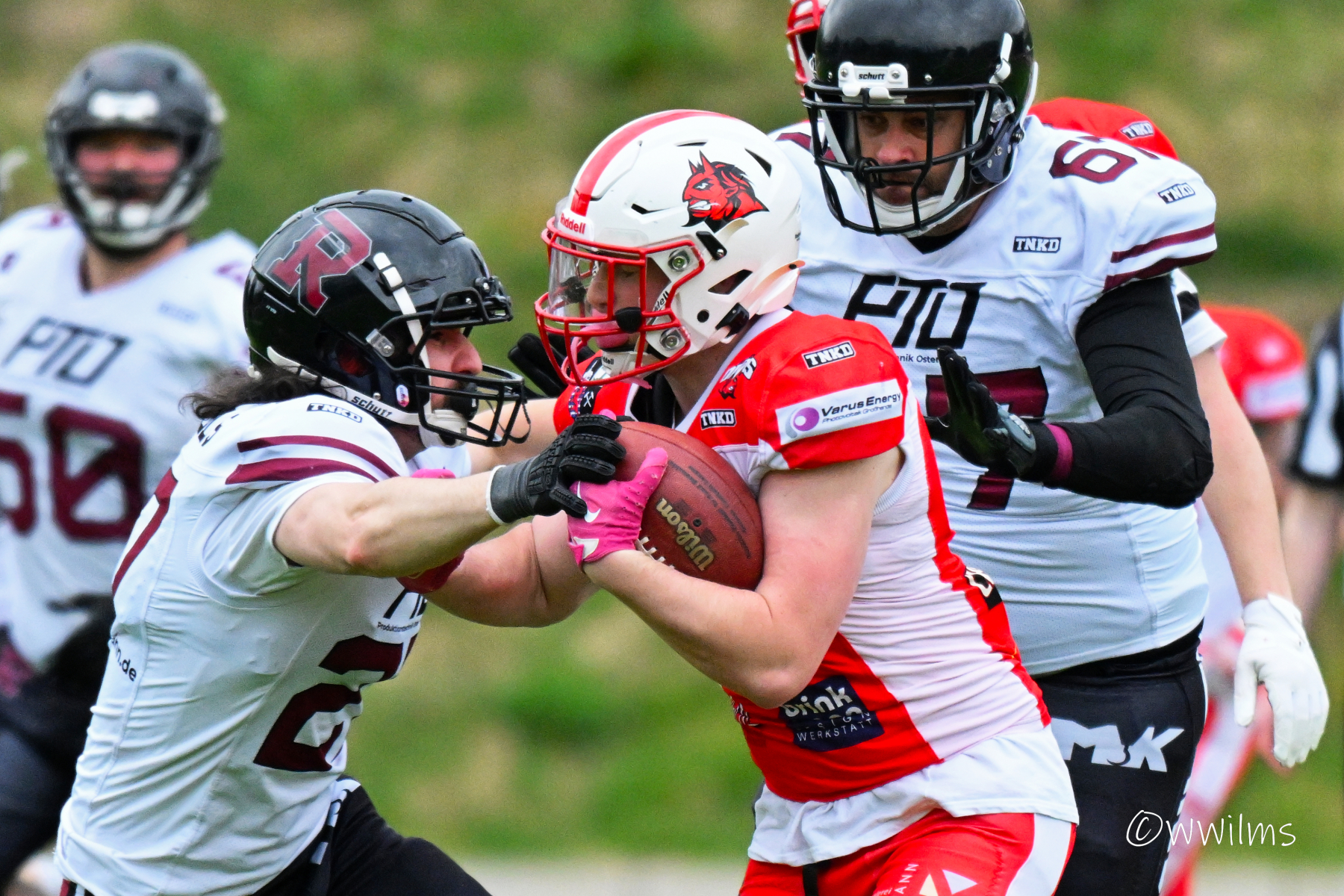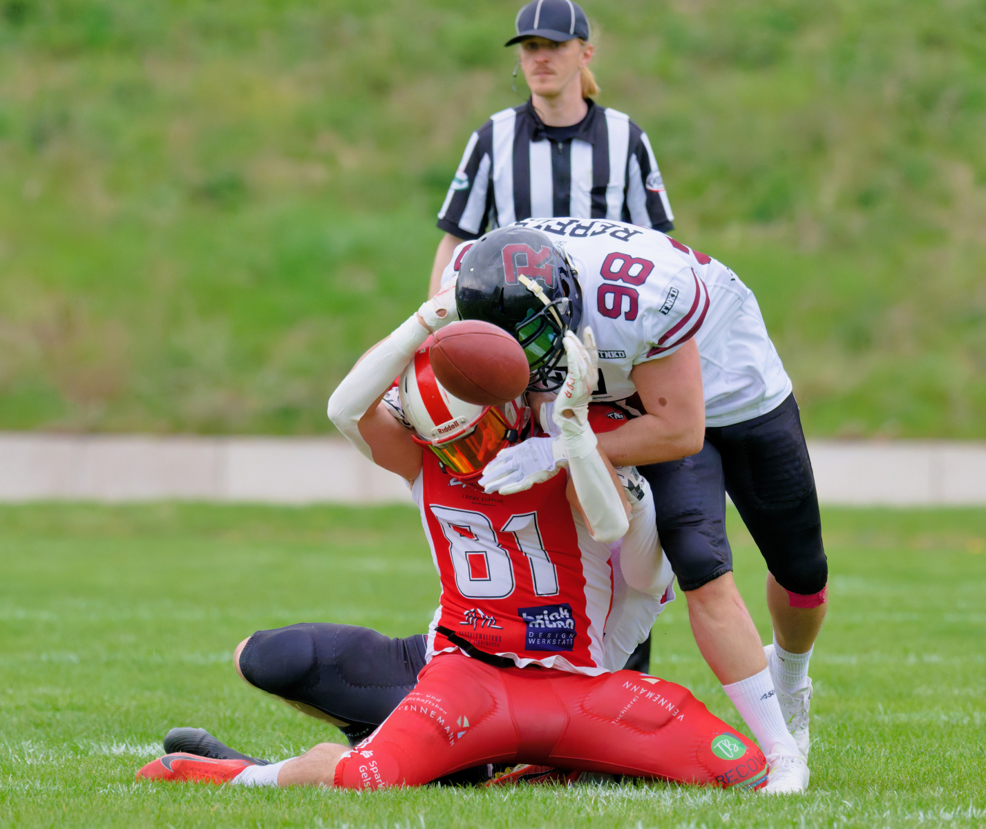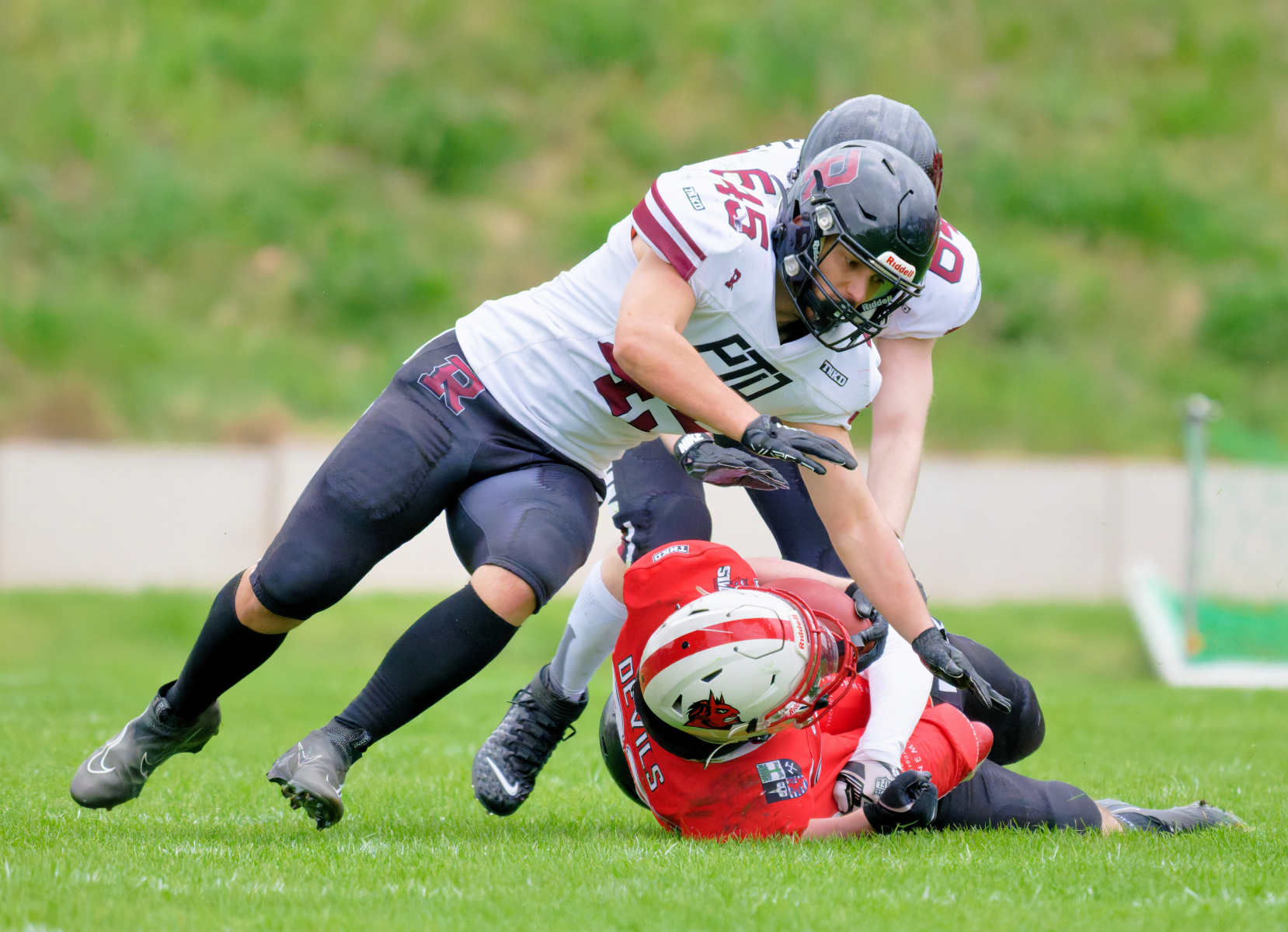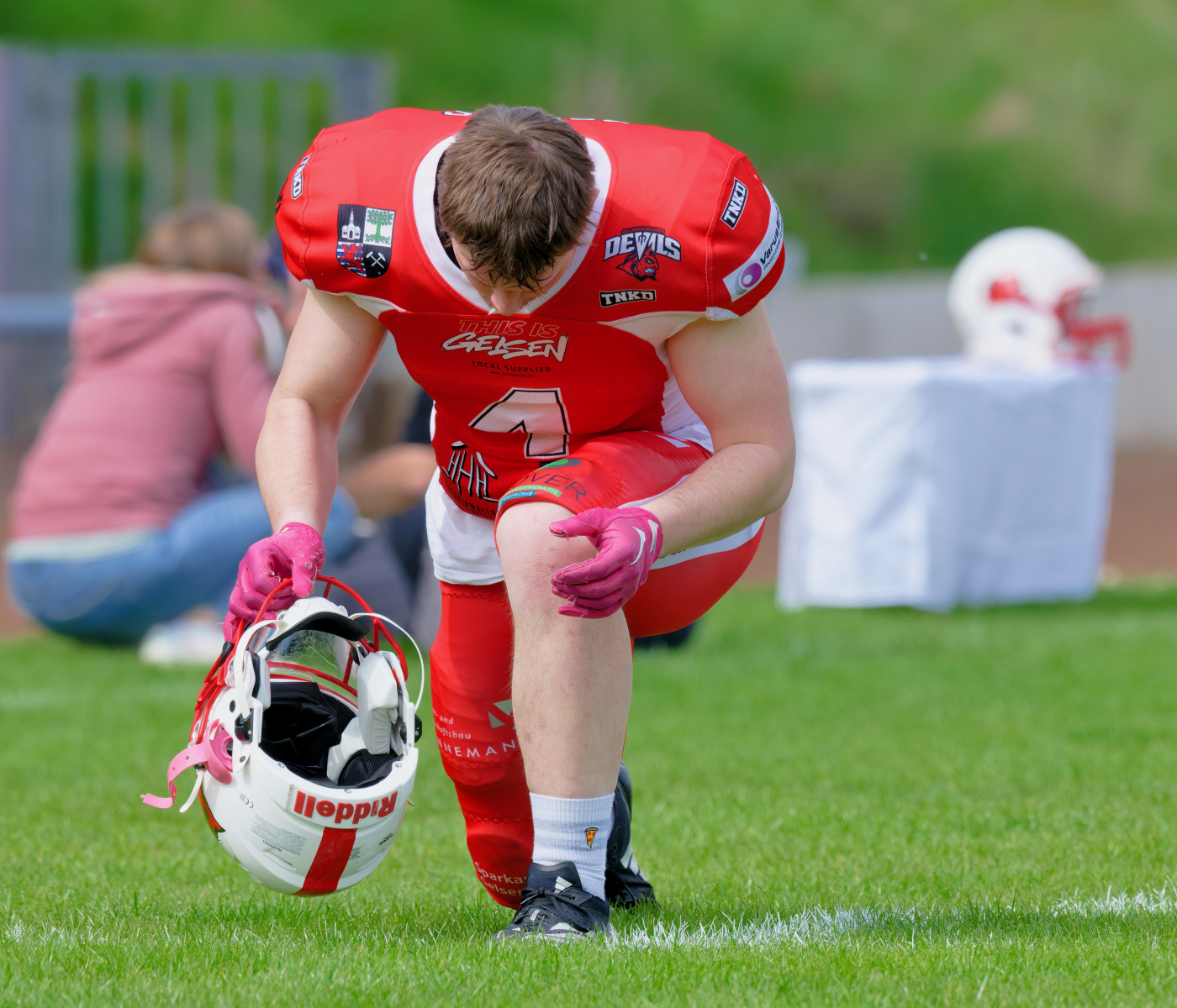 Es folgte zum Ankick um 15:00 Uhr ein Spiel auf Augenhöhe gegen den Oberligisten Bochum Rebels. Beide Teams kämpften in einem offenen Match, doch mit einem glücklicheren Ausgang für die Devils mit einem knappen Sieg von 14:7.